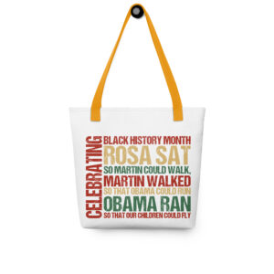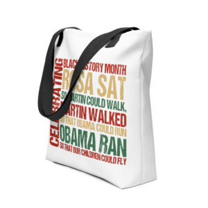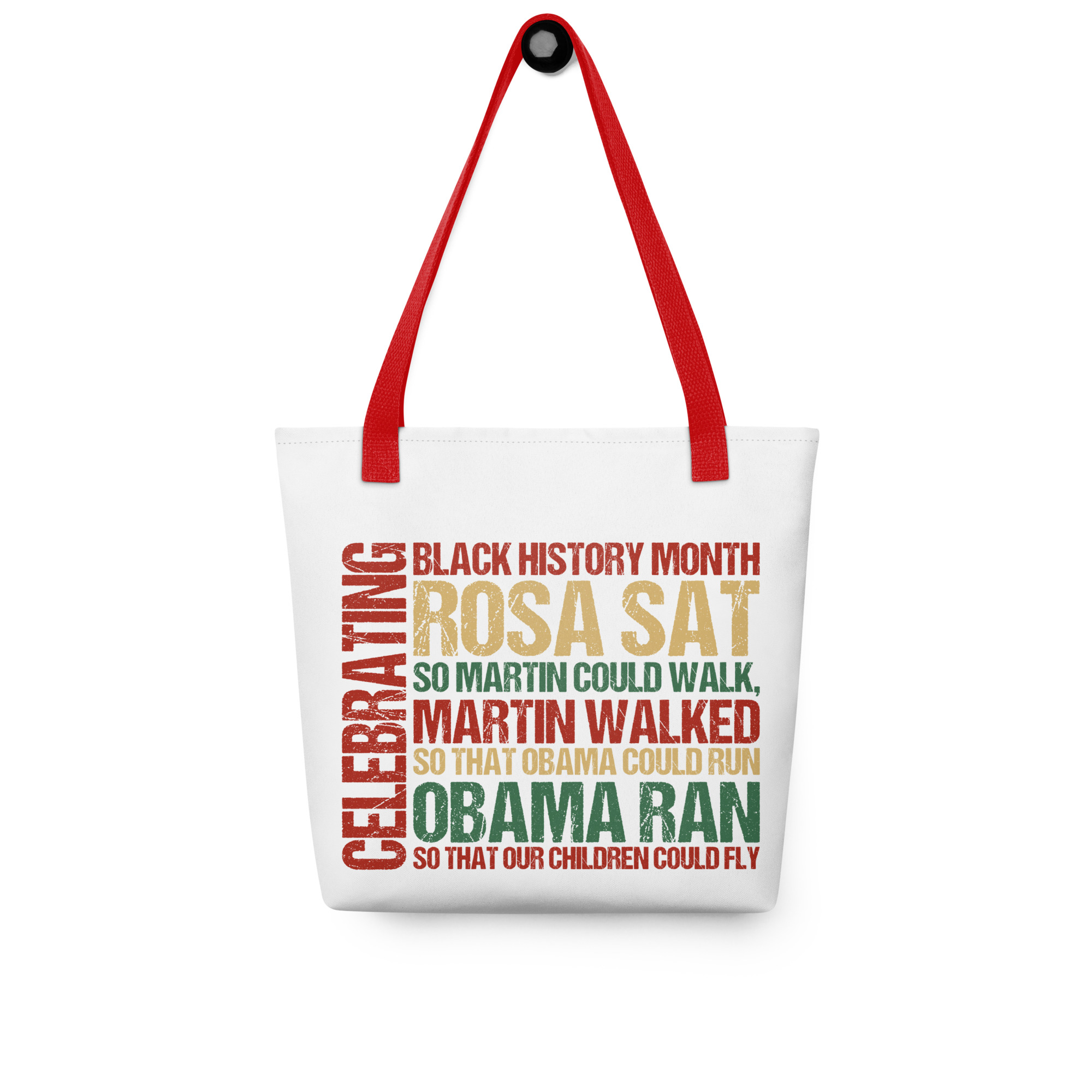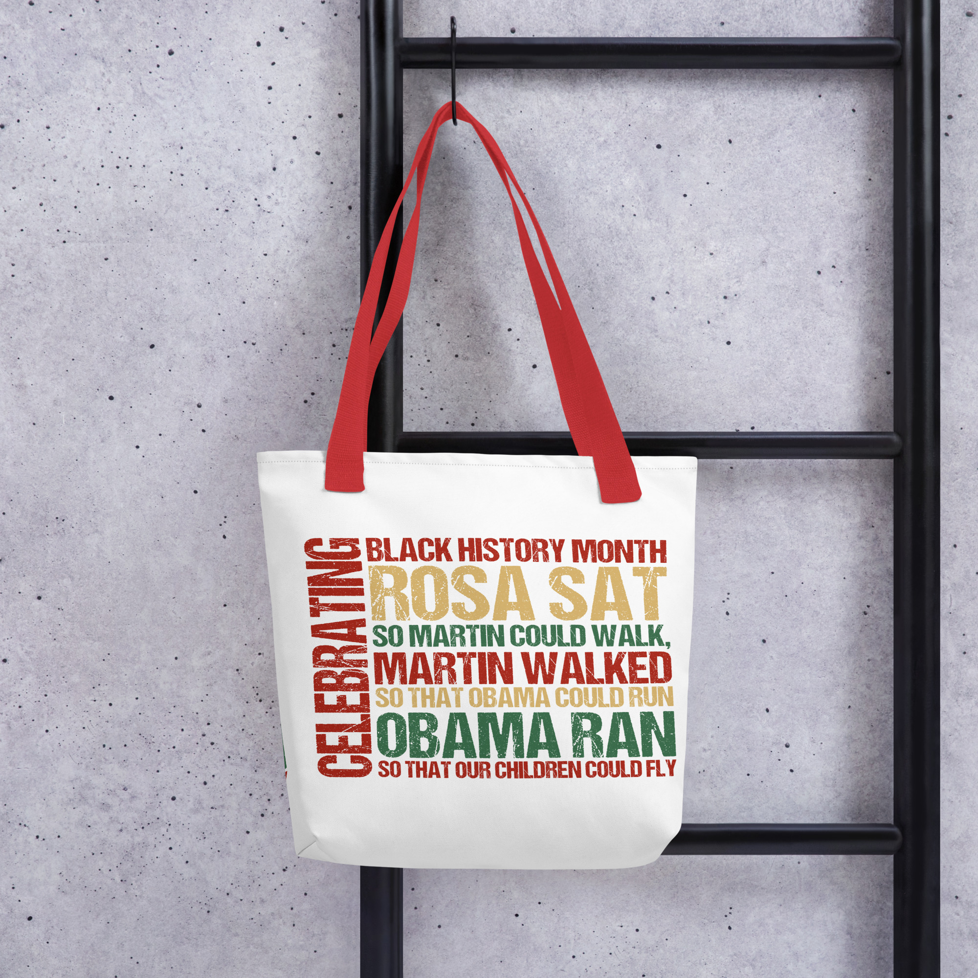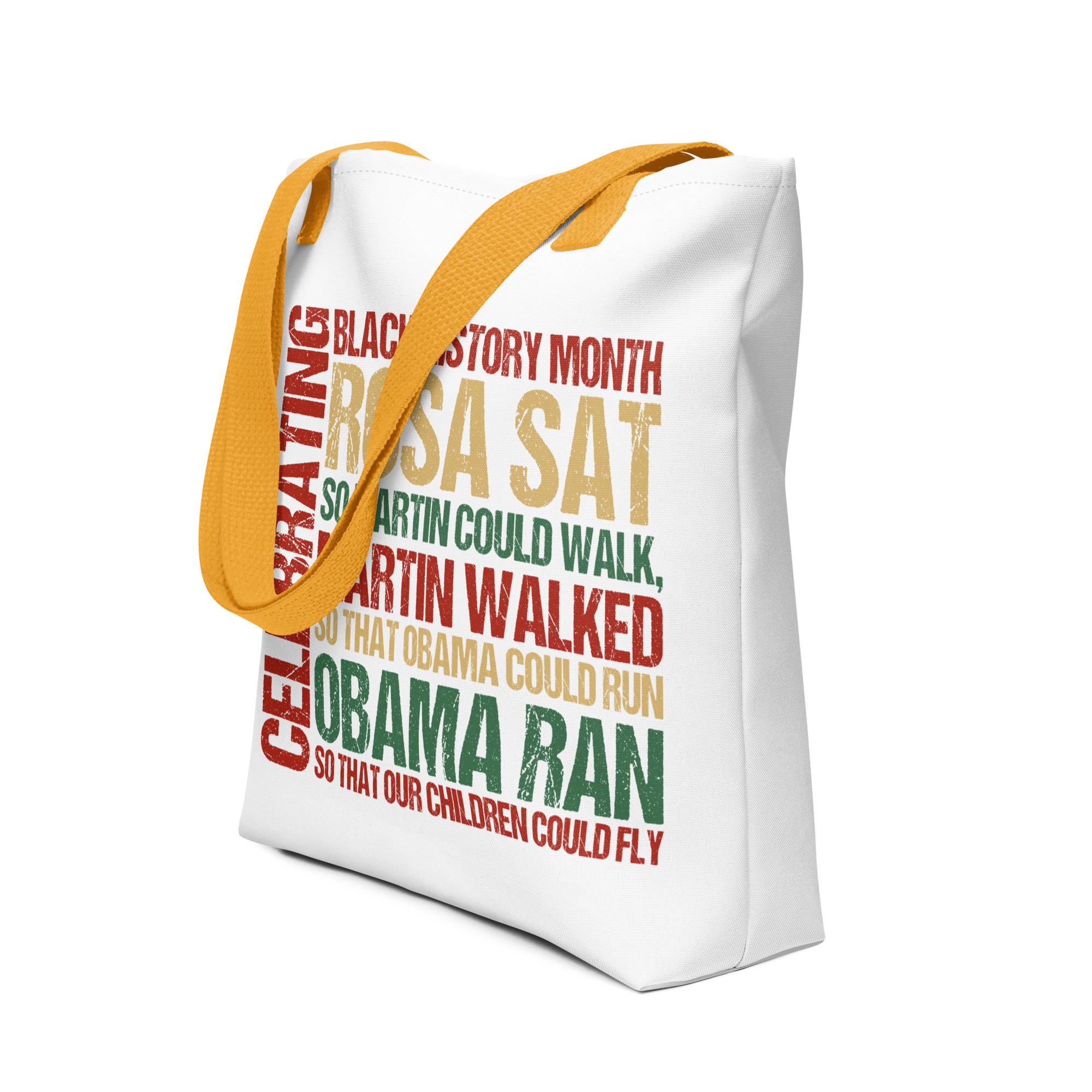 Celebrating Black History Month: Rosa Sat, Martin Walked, Obama Ran Tote BagCelebrating Black History Month: Rosa Sat, Martin Walked, Obama Ran Tote Bag